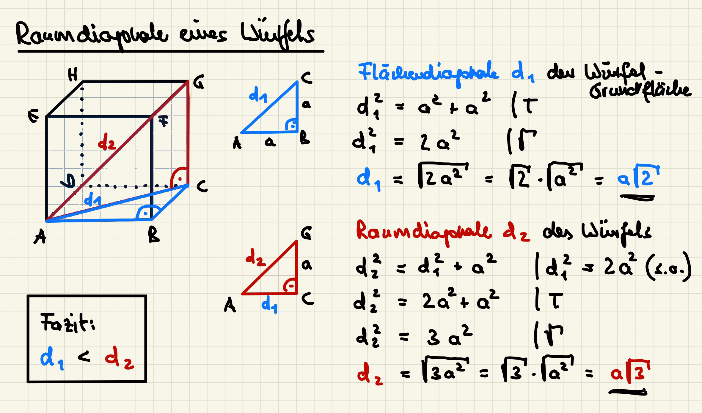 Das Schaubild zur Raumdiagonale eines Würfels (Anklicken zum Vergrößern):